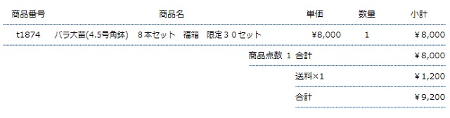 京成バラ園の福箱です。バラ8本セットで8000円!
