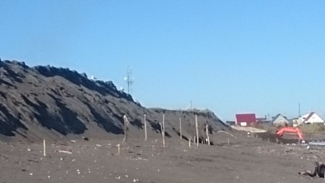 現地に着くとブル&ショベルが砂山直しをしています。